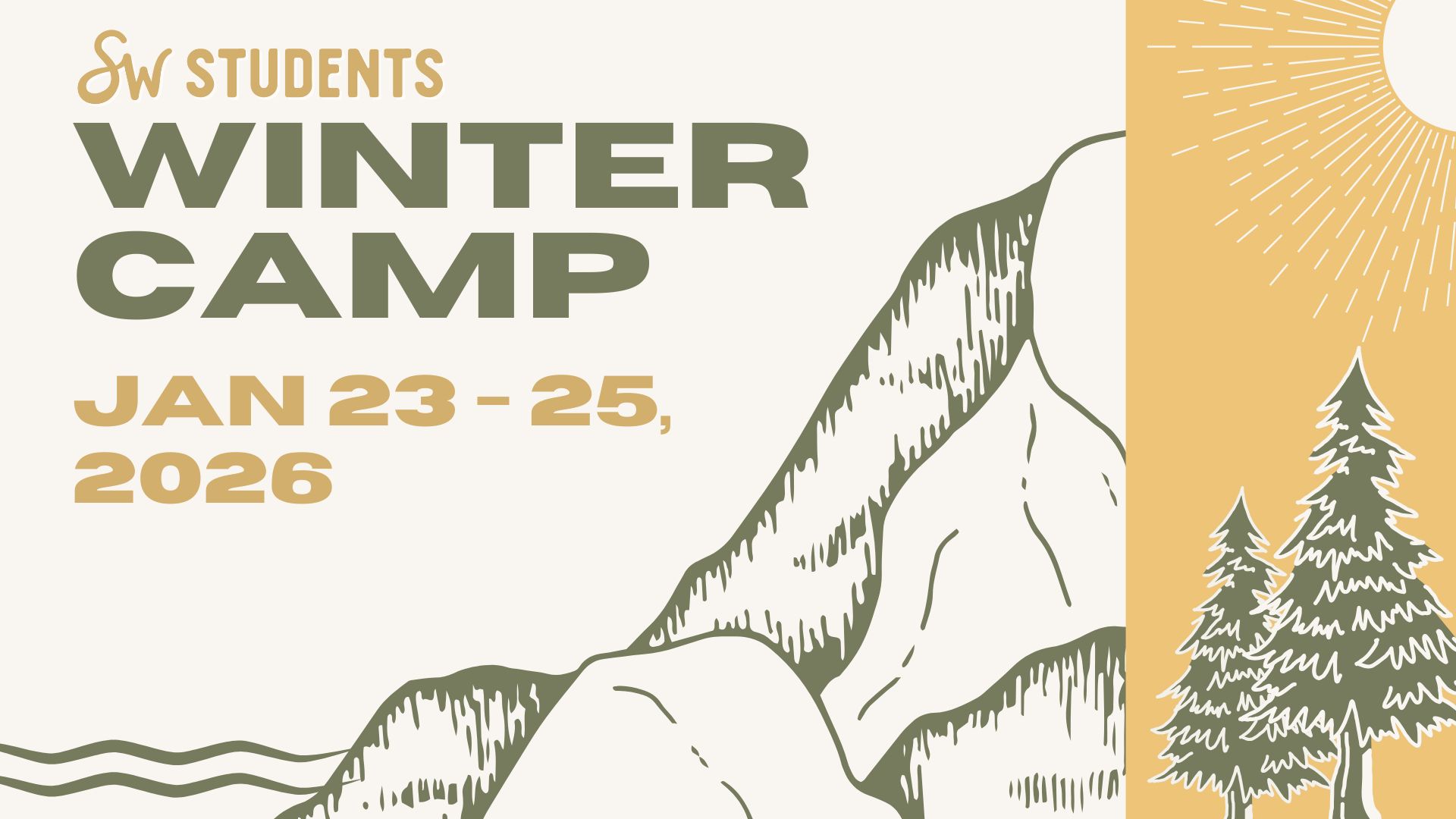 Drop-off will take place at Southwest Church on Friday, January 23rd at 3:00 PM, where students will load the Cardiff bus and head to camp. Pick-up will be Sunday, January 25th at 1:00 PM at Southwest Church.
